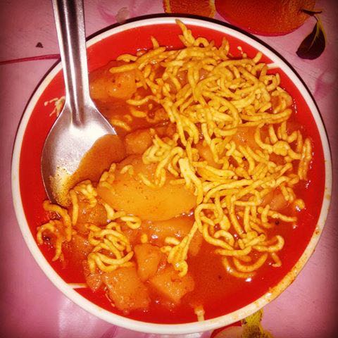 Munna aunty would bring her bucket full of aludum and sell alu bhuja for 1 rupee per poka (a unit of measurement for anything sold in papers). I still couldn’t accept the fact that people would buy aludum with their money instead of macha mithai, anda mithai, ghurra mithai and any other mithai muna aunty sold. So aludum still for me was something me or my friends would buy if they bought only rice or rotis for their lunch, and we had money specifically provided to buy aludum.