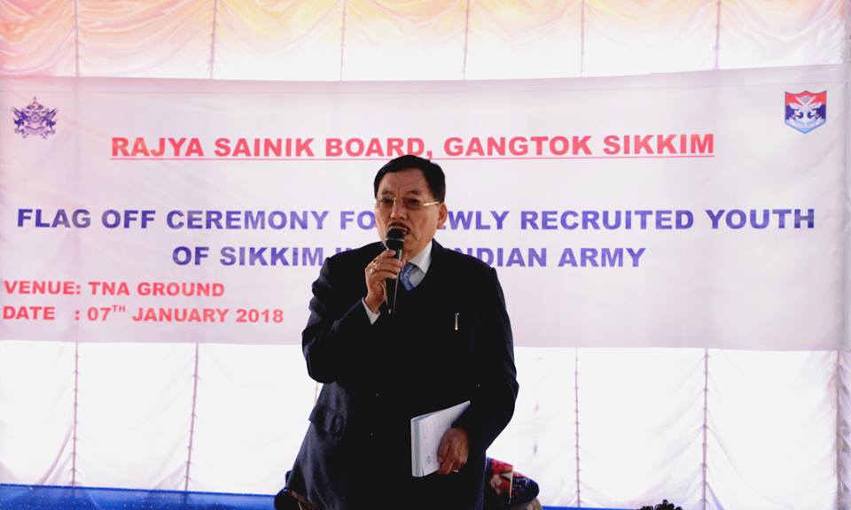 Attending the flag-off ceremony for the newly recruited jawans from the state at Gangtok, Mr Chamling called upon the new recruits to “work selflessly and give their valuable service to our great Nation.”
