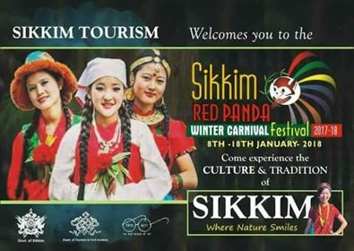 The Sikkim Red Panda Winter Carnival Festival is a Mega-tourism festival of Sikkim which is celebrated for 10 days each year. The Festival is an initiative undertaken by the Govt. of Sikkim to showcase Sikkim’s rich and diverse culture, traditions, customs, cuisines, bio-diversity, history and lifestyle. Spearheaded by the Tourism Department, it is the biggest tourism festival in the State and a major attraction for tourists who come to visit Sikkim from all over India and overseas. The festival aims at promoting sustainable tourism by highlighting the prominent features of Sikkim such as the Himalayan mountain peaks, holy lakes, forests, monasteries & temples, eco-adventure sports, wildlife, and organic farms along with the extravagant display of its culture, traditions, cuisines, folk dances and songs.